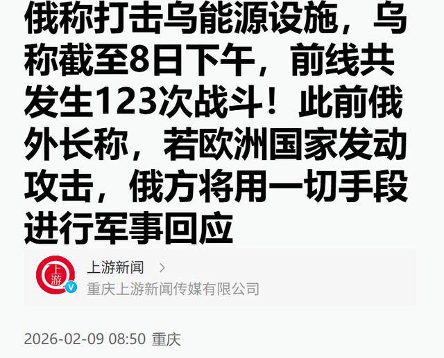 2026-02-09上逛旧事《俄称冲击乌能源设备,乌称截至8日下战书,火线次和役!此前俄外长称,若欧洲国度策动,俄方将用一切手段进行军事回应》?。